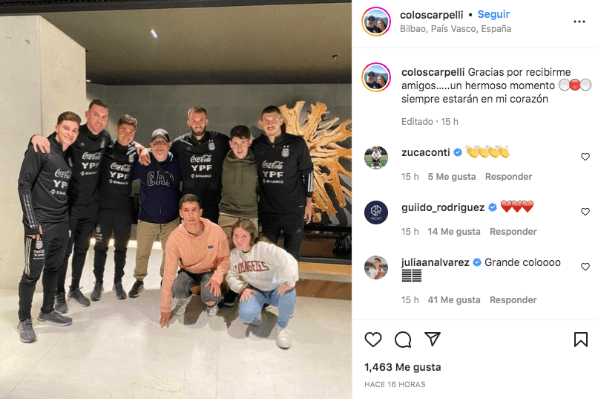 Los encargados de recibir a Scarpelli fueron Julián Álvarez, Franco Armani, Gonzalo Montiel, Germán Pezzella y Guido Rodríguez y el momento quedó retratado en una foto que el propio utilero compartió en su cuenta de Instagram: “Gracias por recibirme amigos…..un hermoso momento,siempre estarán en mi corazón”, escribió. Y en la publicación pueden leerse comentarios de Julián y de Guido Rodríguez, que muestran nuevamente que River es una familia.