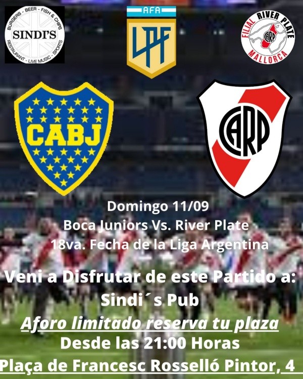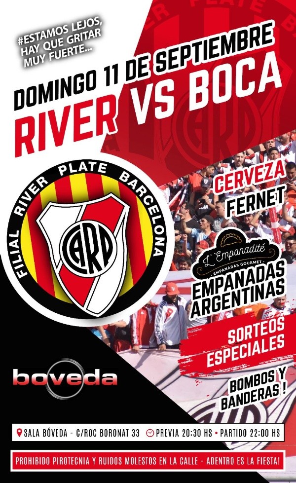 El superclásico no contará con la presencia de simpatizantes millonarios en la última bandeja de la Bombonera, pero habrá un apoyo incondicional desde distintos lugares del país y del mundo. En el Monumental, en la previa del partido, habrá un banderazo en el Puente Labruna organizado por la Subcomisión del Hincha para despedir al equipo, pero no será el único evento que reunirá a una multitud. A la distancia y a miles de kilómetros del barrio de La Boca también habrá una fiesta riverplatense inigualable.