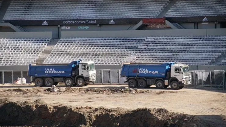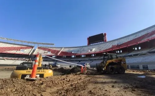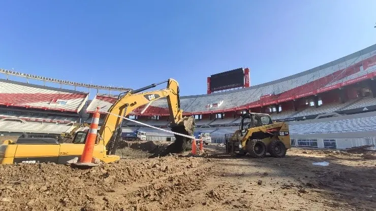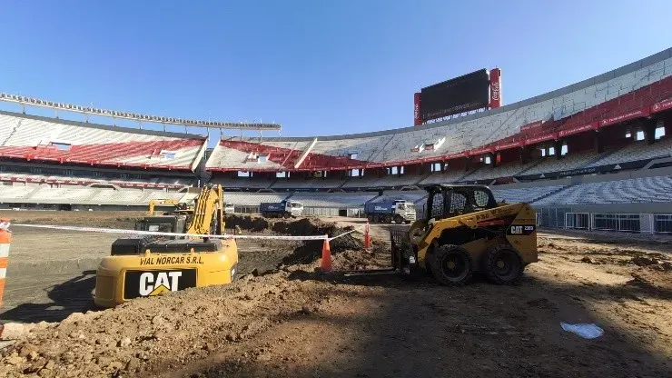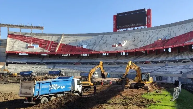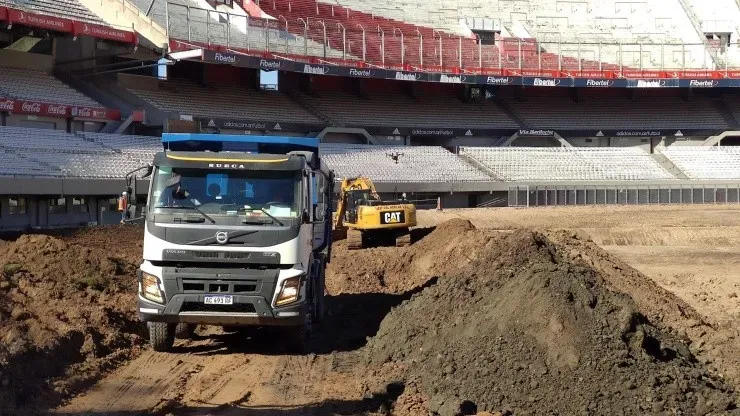 Semana a semana se profundizan los trabajos en el Estadio Monumental, y va tomando cada vez más color la gran obra que se está realizando enla cancha de River. La histórica pista de atletismo ya fue removida por completo, y actualmente mediante todo tipo de maquinarias se está bajando un metro y medio el nivel del campo de juego.