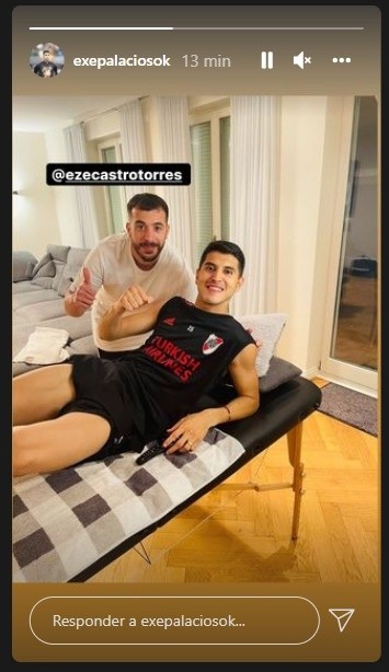 Mientras se prepara para el encuentro de este jueves frente al Betis por la fecha 4 de la Europa League, elvolante subió una foto a sus redes sociales en una sesión de kinesiología con una musculosa de River puesta que lleva el número 15, el que usaba en NuñezObviamente, la imagen empezó a causar furor y a ser difundida por los hinchas del Millonario, que ven en Palacios a uno de los mejores jugadores de la era Gallardo.