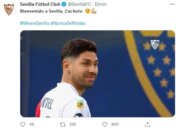 Montiel sufrió un pequeño desgarro en el partido ante Boca por la Copa Argentina, por ende no pudo estar presente ante Godoy Cruz por la Liga Profesional ni en la ida de cuartos de final de la Copa Libertadores ante Atlético Mineiro. Igualmente para ese entonces su salid al Sevilla era prácticamente un hecho, por lo que tampoco hubiese jugado en caso de estar en condición. Cachete se despidió de sus compañeros en la previa al partido contra el Galo, luego partió rumbo a España. Llegó a Sevilla este viernes por la mañana –y ya se lo pudo ver con un barbijo del elenco andaluz- y firmó su vínculo contractual hasta mediados de 2026.