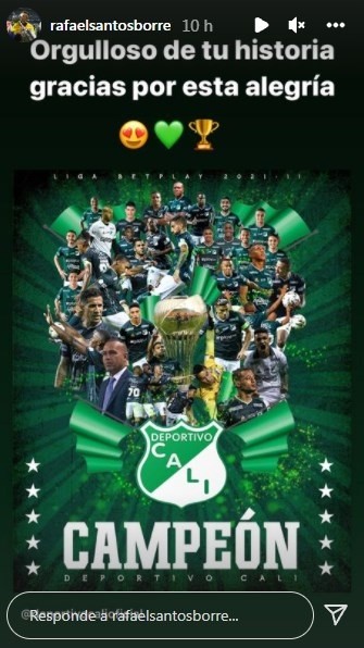 El delantero es dueño de una técnica envidiable, a lo largo de su carrera supo estar en grandes equipos y además ganar varios títulos. En Trabzonspor de Turquía ganó dos, en Cruz Azul uno, en River cuatro –y estuvo en el plantel que ganó la Libertadores 2015-, en Sporting Lisboa uno, en Junior de Barranquilla cinco y en Deportivo Cali recién el primero. Quien celebró este título fue Rafael Santos Borré que en su cuenta de Instagram publicó: “Orgulloso de tu historia, gracias por esta alegría”.