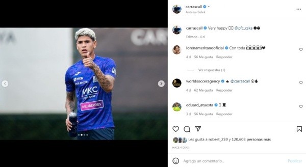 En los últimos días Jorge Carrascal dejó River para pasar al CSKA de Moscú y desde hace varios días el colombiano se encuentra en la capital rusa. El futbolista ya debutó en un amistoso con su equipo –en el cual fue expulsado– y desde entonces no se movió de dicha ciudad, por lo que está lejos de la zona de conflicto, que es el territorio ucraniano, aunque igualmente la situación es preocupante para cualquiera que en estos momentos habite tanto Rusia como Ucrania.