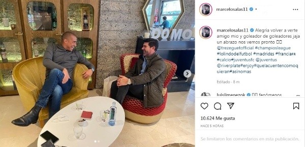 A lo largo de su historia River tuvo enormes delanteros que quedarán en el recuerdo de los hinchas de por vida. En las últimas décadas vistieron el Manto Sagrado atacantes jerarquía internacional y entre ellos se destacan Marcelo Salas y David Trezeguet. El chileno compartió en su cuenta de Instagram una foto junto a Trezeguet en Italia y como comentario puso: “Alegría volver a verte amigo mío y goleador de goleadores jaja un abrazo nos vemos pronto”. Hay que recordar que ambos fueron compañeros en Juventus en las temporadas 2001/02 y 2002/03, esto fue en el medio de los pasos de Salas por River y antes que Trezeguet llegue al club en 2012.