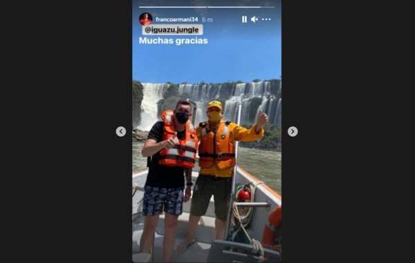 Armani paseó en barco muy cerca de las Cataratas de Iguazú (Foto: Instagram @francoarmani34).