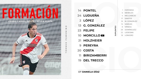 El once de River vs. Ferro