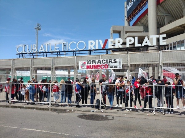 Decenas de miles de hinchas concurrieron al Monumental para agradecerle al DT más ganador de la historia del club: se crearon canciones nuevas, se hicieron banderas y se realizó una de las ovaciones más grandes de los últimos tiempos. Además una vez terminado el partido, Juanfer le leyó a Gallardo una carta de los hinchas, el Muñeco dio un discurso y la casa del Más Grande se vino abajo al escucharlo.
