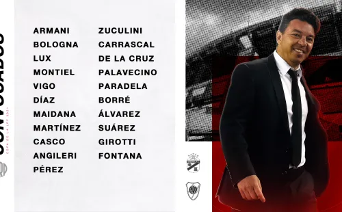 A su vez, quienes no forma parte de la lista sonLeonardo Ponzio, luego haber finalizado la práctica de este jueves en el River Camp con una molestia muscular y Robert Rojas, quien fue padre hace algunas horas y se movió diferenciado en la última práctica. Sumado a Javier Pinola, recuperándose de la fractura de cúbito y radio sufrida en el duelo frente a Platense de la tercera fecha,son tresbajas por lesión que tendrá el Muñeco para este partido. Por su parte, luego de su reaparición en la lista, Angileri y Montiel se perfilan para volver a la titularidad.