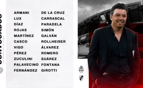 El torneo local pasó a ser la prioridad máxima para River después de la eliminación en cuartos de final de la Copa Libertadores. El Millonario no tiene otro cámino para acceder a la próxima edición del certamen internacional y por eso deberá terminar entre los primeros puestos si quiere tener Copa el año que viene. Este domingo el rival será Gimnasia de La Plata en el Bosque y Marcelo Gallardo dio los convocados para dicho encuentro.