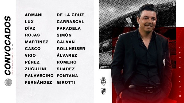Con el ingreso de Alex Vigo en reemplazo de Angileri y la duda en la mitad de la cancha dependiendo a qué tan bien esté De la Cruz, Gallardo podría poner el siguiente equipo ante el Lobo: Franco Armani; Alex Vigo, Paulo Díaz, David Martínez, Milton Casco; Paradela o De la Cruz, Enzo Pérez, Zuculini o Fernández, JuliánÁlvarez; Braian Romero y MatíasSuárez.