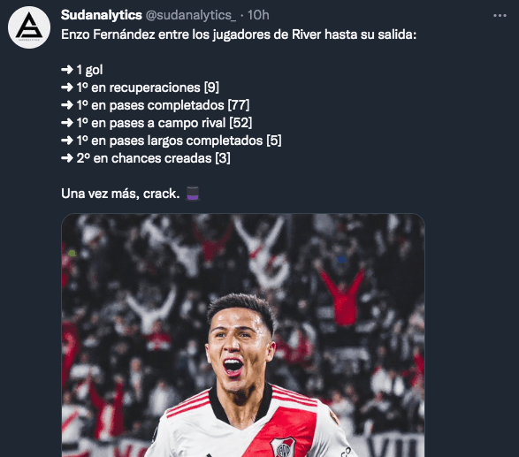 Y agregó, sobre la importancia del funcionamiento colectivo para que se destaque Enzo Fernández, entre otros jugadores: “Tenemos un equipo totalmente comprometido para iniciar los ataques, para recuperar la pelota, para seguir insistiendo, eso es un equipo que me identifica y los jugadores que se comprometen me facilitan mucho el trabajo”.