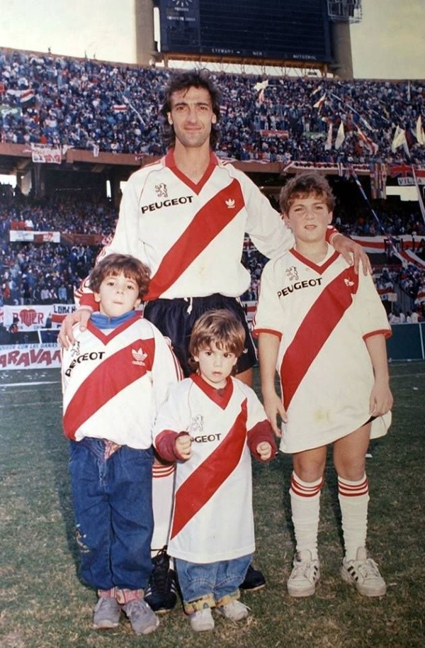 Federico y Gonzalo de niños junto a su padre Jorge, uno de los líderes de River en los 90 (Archivo)