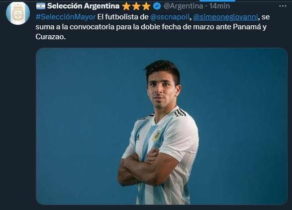 Hablamos de Gio Simeone, hombre del Nápoli, quien recibió a última hora el llamado de Scaloni para sumarse a la delegación que también enfrentará a Curazao en Santiago del Estero. El Cholito no fue al Mundial pero siempre estuvo bien considerado por el cuerpo técnico de Scaloni a raíz de la gran cantidada de goles que viene haciendo hace varios meses en la Serie A y con distintas camisetas.