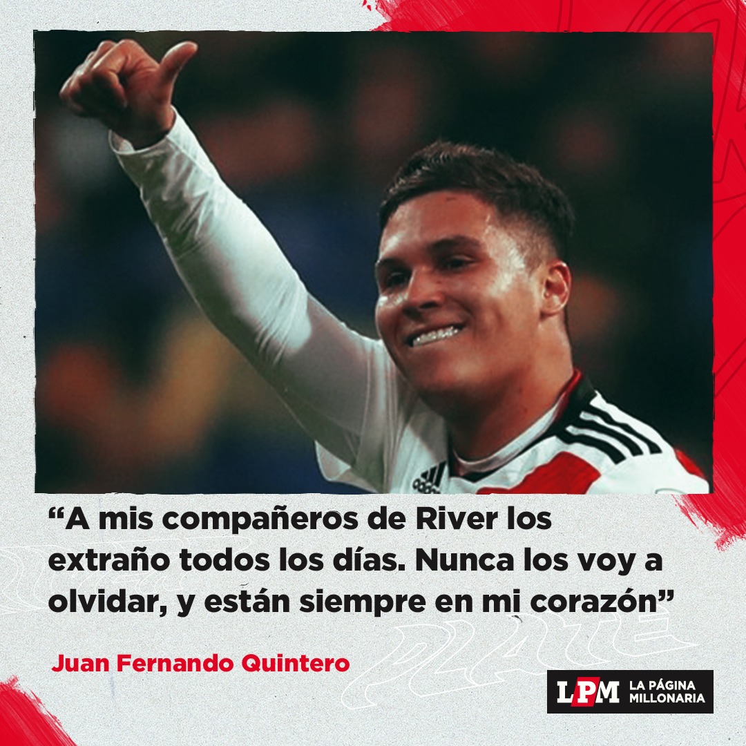 “No tuve problemas con River en ningún momento, ellos fueron transparentes conmigo y yo con ellos. El fútbol es un negocio y las cosas siempre estuvieron claras. Se habló mucho y yo no estoy en deuda por el club.Tuve dos años y medio muy lindos en Riverpero no me fui de la forma que quería, porque uno siempre quiere irse con el estadio lleno y jugando al fútbol“, expresó el colombiano en diálogo con Líbero. Y agregó, agradeciéndole a los hinchas: “A la gente de River le agradezco mucho el cariño. Viví los mejores años de mi vida ahí y voy a ser hincha hasta el día que me muera, me fui feliz y agradecido“.