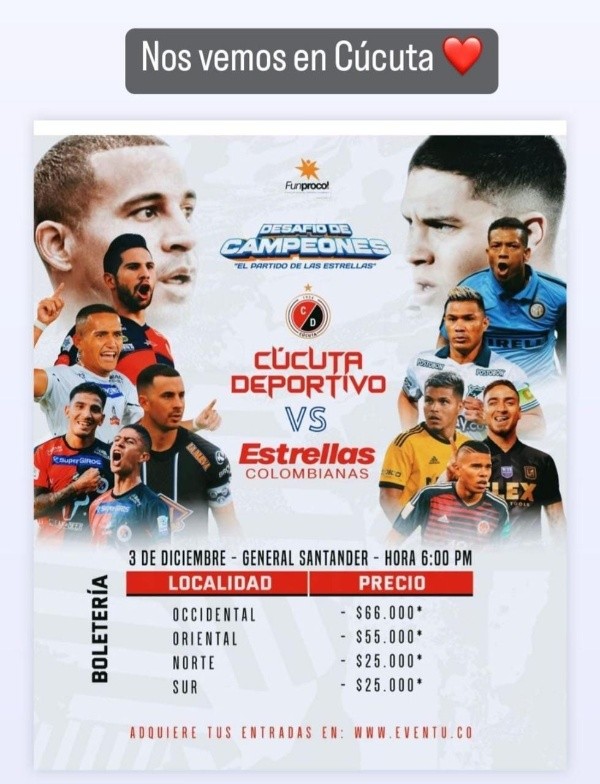 Anunciado como “El Partido de las Estrellas”, Juanfer formó parte de un equipo integrado por grandes figuras del fútbol colombiano de la talla de Giovani Hernández, Guarín, Arzuaga y Macnelly Torres, entre otros. El rival fue el Cúcuta Deportivo, que jugó en su casa, el estadio General Santander. El encuentro fue una excusa para volver a juntar viejos amigos y compañeros dentro de una cancha y regalarle al público un lindo espectáculo.