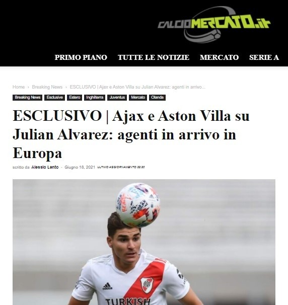 El sitio “Calciomercato” asegura que el representante de Álvarez llegó en estas horas a tierras europeas para iniciar conversaciones y buscar una oferta tentadora para el futbolista y también para las arcas de River. Se estima que una propuesta formal seria por parte del equipo inglés podría acercarse a los 17.000.000 de euros para intentar llevarse al goleador de River en la actual Copa Libertadores.