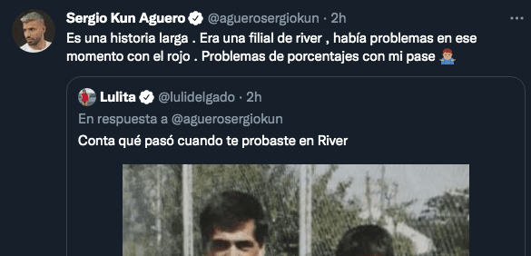 El Kun interactuó con sus seguidores esta mañana en Twitter y se puso a responder todo tipo de preguntas que le hicieran. Una fue de un hincha que le consultó sobre la foto que circula en redes de él junto a su padre con ropa de River y el ex jugador de Barcelona respondió: “Es una historia larga, era una filial de River y en ese momento había problemas con Independiente, problemas con los porcentajes de mi pase“. Se entiende que el Rojo no quiso darle el pase al jugador para que se quede en Nuñez y eso, sumado a la complicada situación económica de ese entonces en River, hizo que todoquedara trunco.