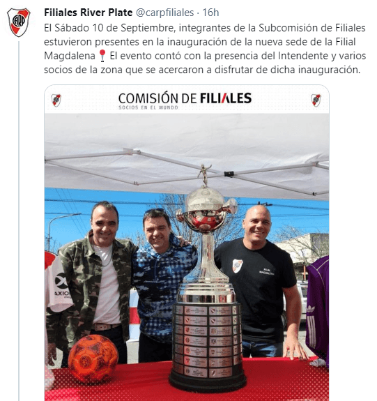 En esta oportunidad, la Filial Magdalena presentó en sociedad su nueva sede con un evento muy especial que contó con la presencia de los integrantes de la Subcomisión de Filiales y del intendente Gonzalo Peluso. Los socios y socias de la zona se acercaron para disfrutar de la inauguración y aprovecharon para tomarse fotos con la Copa Libertadores, que prestó el trofeo para que la fiesta fuera completa.