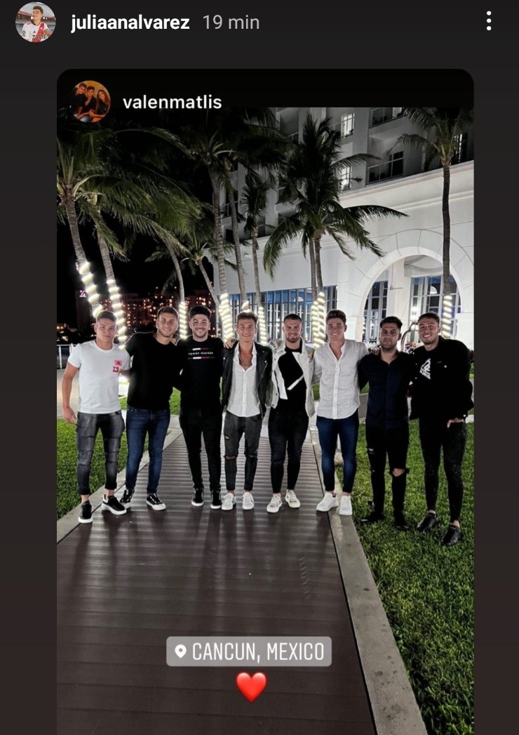Tal es el caso de Agustín Fontana y Braian Romero, quienes se fotografiaron muy sonrientes con sus mujeres y lo compartieron en las cuentas de Instagram de ambos. Por su parte Julián Álvarez, el hombre del momento, eligió como destino México y la compañía de varios de sus grandes amigos (entre ellos Lucas Beltrán) para compartir su noche de Navidad. Mientras que Agustín Palavecino subió un video de los festejos en plenas calles de Nueva York, donde pasa estos días junto a su pareja.