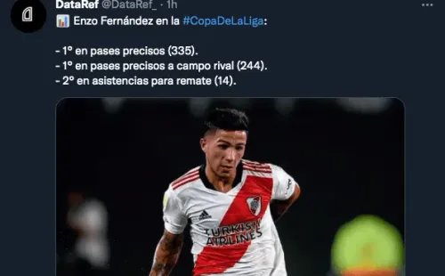 Sacando la derrota de la primera fecha con Unión de Santa Fe, River lleva un andar casi perfecto en la Copa de la Liga. Transcurridas seis jornadas, el Más Grande está puntero y su fútbol va levantando cada vez más vuelo. Cada partido es un mundo y siempre van a ser normales los altibajos en los niveles de determinados futbolistas, por esosorprende cuando uno logra de manera sostenida durante varios partidos un nivel casi superlativo, tal es el caso de Enzo Fernández, el dueño del mediocampo del Millonario.
