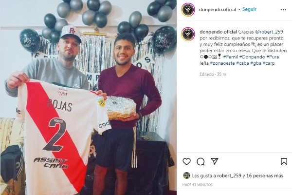 Este sábado Robert Rojas celebró su cumpleaños número 26 junto a sus seres queridos. En las imágenes compartidas en las redes sociales se pudo observar una torta con el escudo de River, además también se pudo ver al defensor paraguayo con uno de los encargados del catering del cumpleaños y en la fotoRojas aparecíasin muletas, un gran avance en su recuperación.