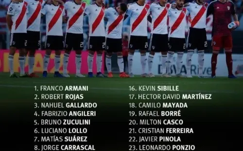 Las cuatro incorporaciones del mercado de pases ya tienen su dorsal asignado. Robert Rojas usará la camiseta número 2, Fabrizio Angileri la 4, Matías Suárez la 7, y Jorge Carrascal la 8. Los juveniles que forman parte de la lista son Nahuel Gallardo, Julián Álvarez, Ezequiel Centurión, Santiago Sosa, Kevin Sibille, David Martínez y Cristian Ferreira.