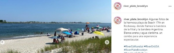 La playa es laBeach 17th de Rockaway Beach, y tiene la particularidad que el salvavidas de allí es fanático de River y miembro de la filial, lo que permitió que el colorido riverplatense en el lugar sea interminable, en un balneario que es espectacular donde se destaca la arena blanca y el agua puramente cristalina donde uno puede divisar su cuerpo a la perfección si se mete al mar.