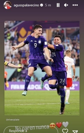 Tras su golazo, muchísimos jugadores del actual plantel de River y otros que pasaron por el club se pronunciaron y compartieron su alegría por el buen momento de la Araña. Lucas Beltrán, Agustín Palavecino, Benjamín Rollheiser, Matías Gallardo, Fernando Cavenaghi y hasta Javier Mascherano postearon alguna de las varias fotos que dejó el festejo de Julián abrazándose con Enzo Fernández, como en sus mejores épocas en Nuñez.