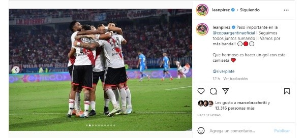 Luego del triunfo y la clasificación a los 16avos de final, Leandro González Pírez hizo un posteo en su cuenta de Instagram y se mostró feliz por volver a gritar: “¡Paso importante en la @copaargentinaoficial! Seguimos todos juntos sumando. ¡Vamos por más banda! Qué hermoso es hacer un gol con esta camiseta”, expresó el zaguero central del Más Grande, que a fuerza de buenas actuaciones cambió murmullos por aplausos.