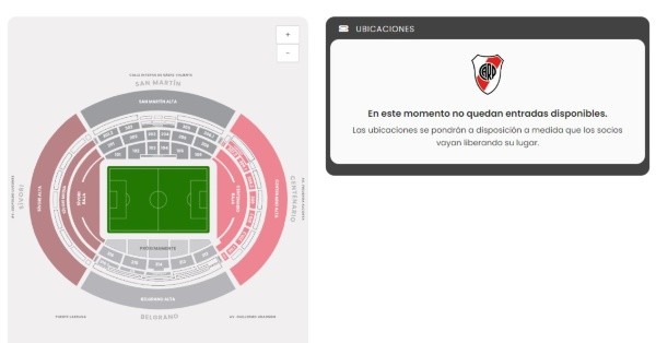 Las localidades para ver al Más Grande volaron en pocos días y ya no queda un solo ticket para ver a River en su segunda presentación en condición de local. Las entradas salieron a la venta el sábado al mediodía para los socios sin TLM y continuó para los miembros de la Comunidad Somos River el domingo. Este miércoles apareció el cartel de “sold out”. El Monumental volverá a estar a tope, con 83.198 espectadores y la fiesta de siempre.