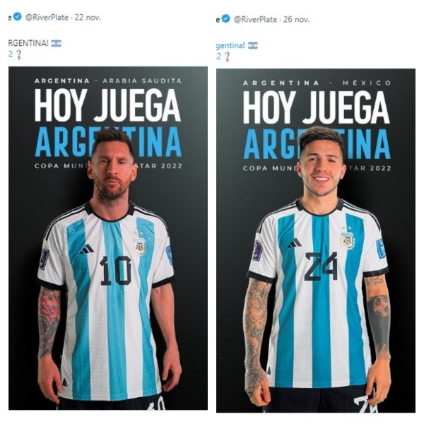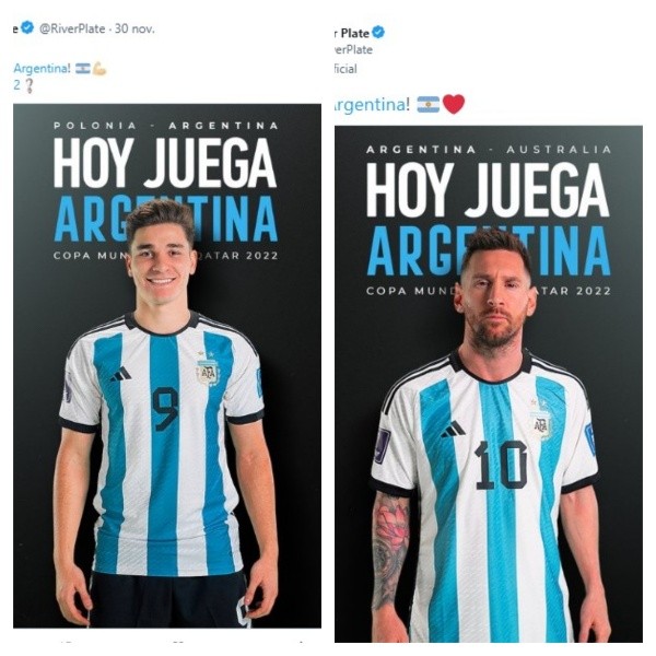 Con el inicio de la Copa del Mundo, la publicación que realiza el Twitter oficial de River cambió a “Hoy juega Argentina”. Hasta aquí, nada fuera de lo normal. Sin embargo, los hinchas del club de Núñez fueron notando un detalle con el transcurrir del certamen: que cada uno de los futbolistas que fue apareciendo en cada post recibió una suerte de bendición y convirtió algún gol en el partido anunciado.