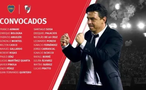 Esta mañana, el entrenador de River confirmó la lista de convocados para el partido del próximo martes 22 de octubre. El mismo comenzará a las 21.30 horas y será transmitido por Fox Sports.