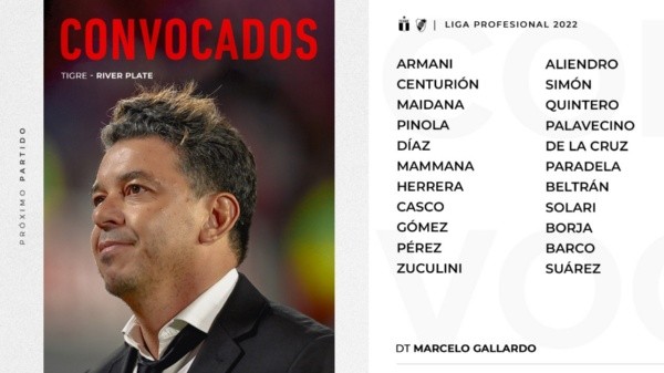 El próximo sábado desde las 20.30 horas el elenco del Muñeco visitará a Tigre en Victoria por la fecha 16 de la Liga Profesional. Y para este encuentro, el DT del Más Grande ya tiene prácticamente todo definido. En una semana en la que recibió buenas noticias con el regreso a los entrenamientos de varios futbolistas, el técnico de River confirmó la lista de convocados con varias novedades y con el retorno de varios futbolistas claves.