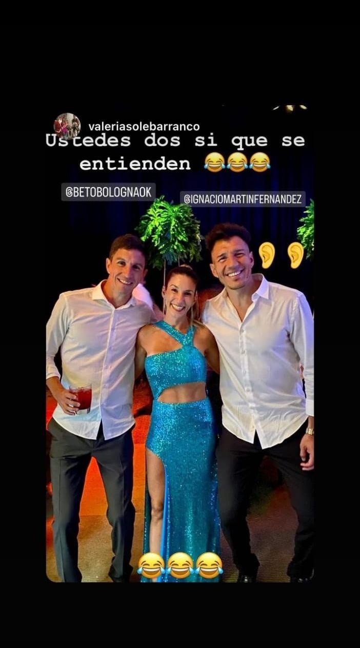 Entre los ex River, el flamante matrimonio contó con la presencia estelar de Ignacio Fernández y de Enrique Bologna. Nacho y Beto coincidieron en una de las tantas fotos del casamiento. Valeria, esposa del ex arquero de River, compartió una historia en su cuenta de Instagram con una divertida acotación: “Ustedes dos sí que se entienden”, publicación que el propio Bologna compartió en sus redes con una sonrisa.
