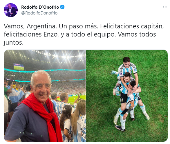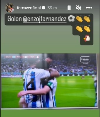 Por su parte, Fernando Cavenaghi también se rindió a los pies del ex volante millonario y publicó: “Golón @enzojfernandez”. Sebastián Driussi, por su parte, fue uno de los más efusivos: “Qué golazo hiciste gordo hdp”. Mientras que Esequiel Barco también posteó una historia con la publicación que hizo la cuenta oficial de River: “Uffff hermano”. Por su parte, el ex presidente del Más Grande, que estuvo presente en el estadio, tampoco escatimó elogios: “Vamos, Argentina. Un paso más. Felicitaciones capitán, felicitaciones Enzo, y a todo el equipo. Vamos todos juntos”, señaló en su cuenta de Twitter.
