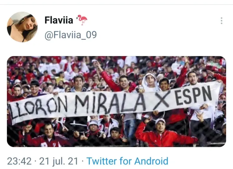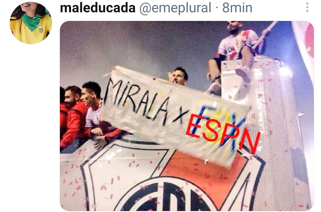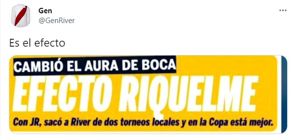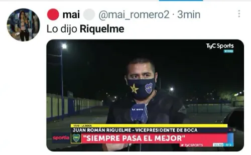 Además hubo referencia al archivo de frases de Juan RománRiquelme en situaciones puntuales de la historia contemporánea que ahora le jugaron en contra, y también al hecho de saber que River es el único equipo argentino que sigue de pie en el torneo más importante del continente.
