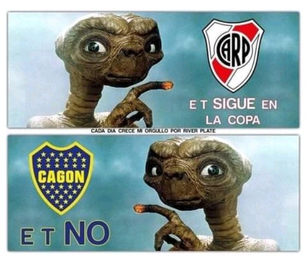 Como suele ser costumbre en cada partido decisivo, los memes se hicieron protagonistas una vez consumados los acontecimientos. En este caso la estrella de la semana volvió a ser la Copa Libertadores, con el aliciente que jugaban River y Boca. El Más Grande selló su pasaje a cuartos esta noche en La Paternal frente a Argentinos, mientras que el clásico rival quedó eliminado en Brasil en la noche del martes por penales.