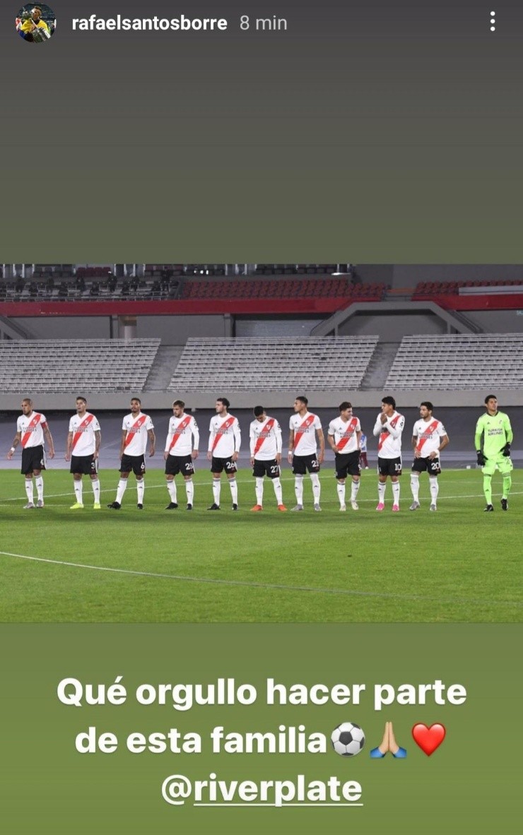 Pero en un punto sí estuvieron formando parte del partido, desde el acompañamiento y el apoyo, y al final del mismo no dudaron en soltar mensajes de agradecimiento y orgullo pleno por el esfuerzo de todos sus compañeros. Nicolás De La Cruz, Santiago Simón, Lucas Beltrán, Bruno Zuculini y Rafael Santos Borré, entre otros, inundaron sus cuentas de Instagram felicitando al equipo.