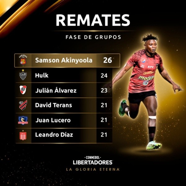 Esta superioridad del Millonario en la fase de grupos se vio reflejada en una serie de estadísticas que publicó la Conmebol en sus cuentas oficiales. Por un lado, Julián Álvarez aparece en el top 3 de los futbolistas con más remates en lo que va del certamen. Con 23 disparos al arco, está a solo uno de Hulk (Atletico Mineiro) y a 3 de Samson Akinyoola (Caracas). Además, tiene 6 goles y está a solo un tanto del goleador de la Copa. Por su parte, hay otros dos futbolistas del Más Grande entre los protagonistas con más pases completados: Enzo Fernández (434) y David Martínez (401). Este ránking lo lidera Allan del Mineiro (440).