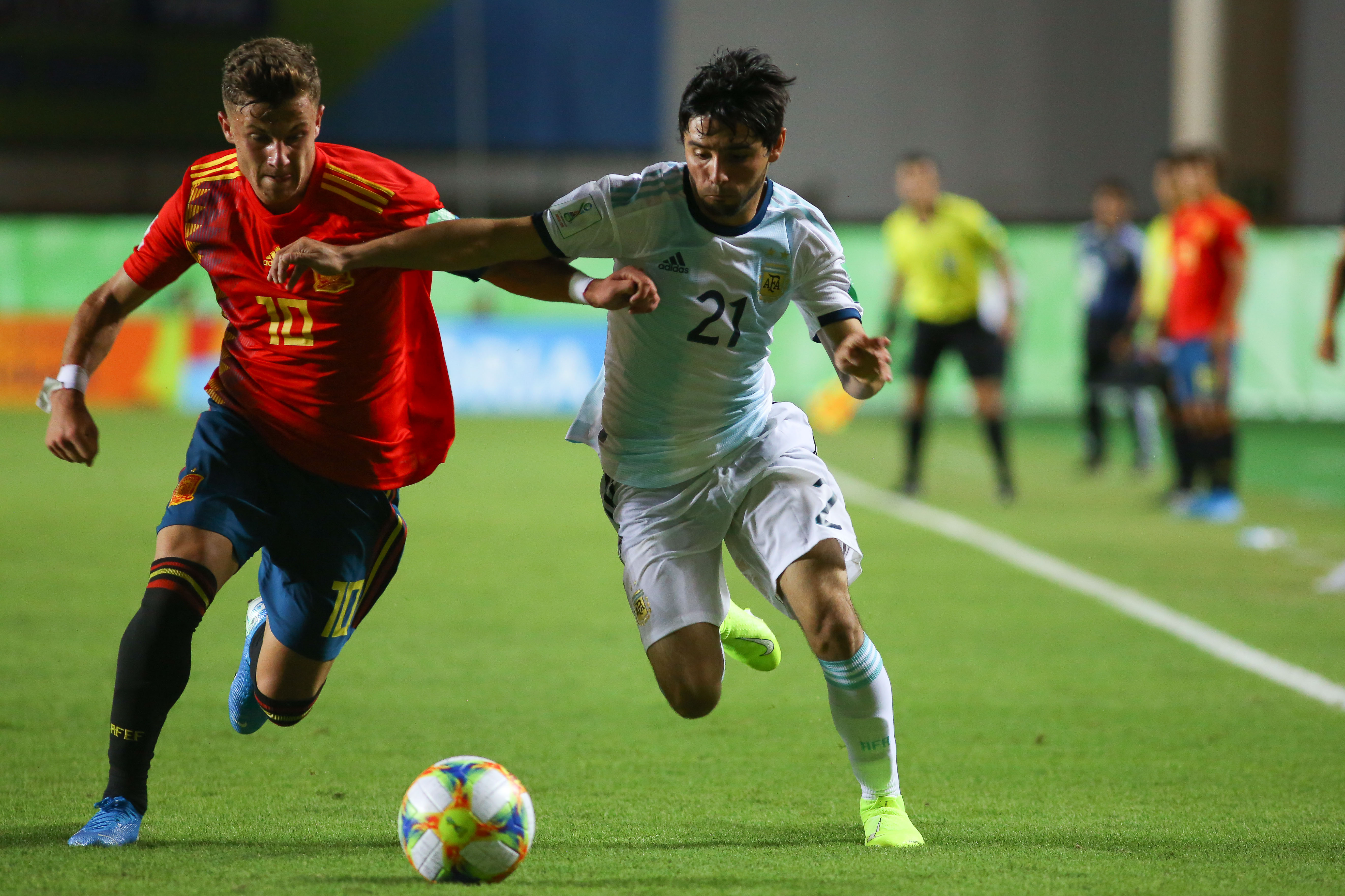 Vera representando a la Selección Argentina en el Mundial sub 17 de Brasil en 2019 ante España. (Foto: Getty)