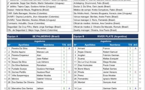 De esta manera, River saldrá a la cancha en busca de una de las hazañas más grandes de su historia futbolísticacon los siguientes once futbolistas: Franco Armani; Gonzalo Montiel, Paulo Díaz, Robert Rojas,Pinola,Angileri; Ignacio Fernández, Enzo Pérez, Nicolás De La Cruz; Matías Suárez y Rafael Borré.