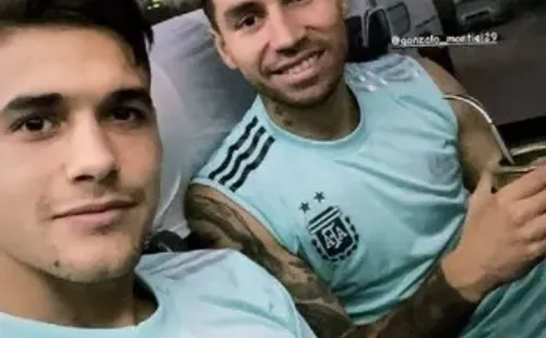 En el plantel actual de la Selección Argentina hay bastante presencia millonaria, ya sea por jugadores del actual plantel –Armani, Montiel y Julián Álvarez– y también varios ex futbolistas del Más Grande como es el caso de Pezzella, Guido Rodríguez y Lucas Martínez Quarta. Justamente el Chino palpitó el duelo ante Brasil en sus redes sociales con una foto junto a su gran amigo: Gonzalo Montiel. El marplatense subió una historia a su cuenta de Instagram junto a Cachete con una serie de emojis que expresaban el deseo de conquistar el título continental.