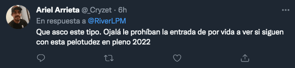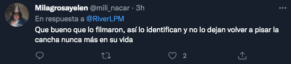 Desde La Página Millonariatambién condenamos firmemente lo que ocurrió con este hincha de River. No representa los valores del club y le está faltando el respeto a un escudo y una institución llena de historia, además de que expone a River a sufrir sanciones por parte de la Conmebol por actos xenófobos y racistas. Que no se repita más.