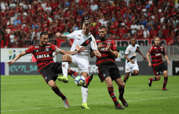 Maxi López, cuando enfrentó a Flamengo con la camiseta de Vasco da Gama.