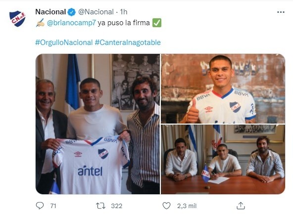 Brian Ocampo finalmente decidió renovar su vínculo contractual con Nacional de Montevideo, su intención es seguir en un su país para poder mantenerse en la Selección y aspirar a ir al Mundial de Qatar. Además hay que recordar que pese a que estuvo sin contrato estos días de enero, el futbolista se entrenó con el Bolso todo este tiempo, su relación tanto con el cuerpo técnico como con la dirigencia era buena y por eso fue posible que pueda hacerlo.