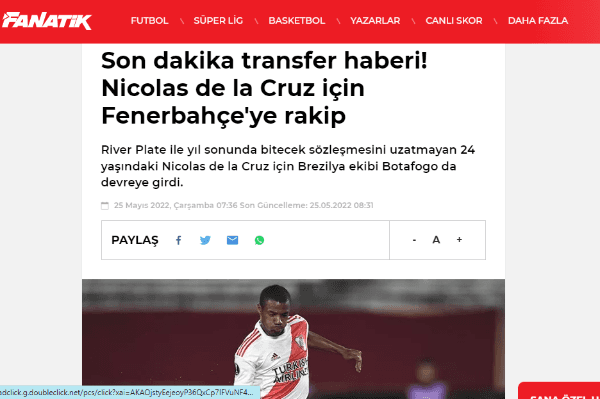 Luego de algunos sondeos iniciados desde la Real Sociedad, en las últimas horas surgieron algunos rumores que vinculan a Nicolás De La Cruz con otro club imprensando del viejo contienente. Se trata del Fenerbahce, una de las instituciones más populares de Turquía. Algunos medios locales se hicieron eco de la posibilidad y adelantaron que ya existen algunos contactos con Paco Casal, su representante. De esta manera, el Muñeco podría quedarse sin uno de sus piezas claves, justo en una etapa de definiciones en la Copa Libertadores.