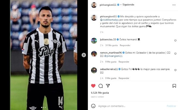 “Me despido y quiero agradecerle a Libertad por este tiempo que pasamos juntos! Compañeros y gente del club le agradesco por el cariño y respeto que tuvimos mutuamente! Que sigan los éxitos guma”, escribió en su cuenta de Instagram Leonel Vangioni. Por otra parte el Piri dejó River a mediados de 2016, se fue al Milan, allí no jugo mucho y en 2017 emigró a Rayados de Monterrey y estuvo por tres años. En 2020 llegó a Libertad.