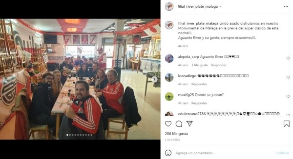 -A la filial llegó desde el primer día, la fundamos el día 5 de mayo de 2013, ese día fue la primera juntada entre varios integrantes que hoy conformamos esta filial tan grande. Desde entonces que estoy en la filial, fui uno de los fundadores, próximamente vamos a cumplir 9 años de vida. La filia fue creciendo poco a poco, hoy en día tenemos 120 socios activos y también tenemos muchísimos integrantes que nos acompañan y hacen que la filial cada día sea más grande. Tenemos la suerte de tener una sede propia, hace 7 años que estamos en el mismo lugar y lo bautizamos como el Monumental de Málaga. Ahí es donde realizamos todas nuestras actividades, tenemos nuestro pequeño museo con souvenires de River de hinchas que pasan por Málaga y quieren visitar el templo. Estamos muy orgullosos de nuestro lugar e invitamos a todos los riverplatenses que pasen por esta ciudad de Andalucía, queremos que nos visiten. Estamos encantados que puedan disfrutar en un lugar como el nuestro, el Monumental de Málaga.