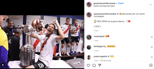 Nacho fue uno de los verdugos del Millonario en la última edición de la Copa, debido a que su equipo lo eliminó propinándole un duro 3-0 en la vuelta de los cuartos de final. Nacho jugó el partido de ida y se perdió la revancha por haberse ido expulsado: “Me putearon un poquito. Pero siempre la mejor, tengo una gran relación con todo River. Obviamente que no me dijeron nada“, bromeó respecto a la situación.