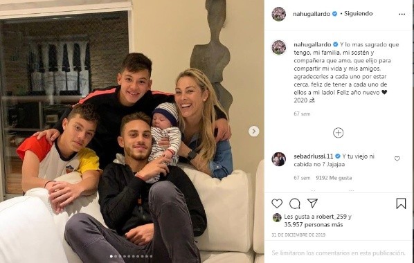 Precisamente Nahuel utilizó sus redes sociales para compartir una foto sacada del arcón de los recuerdos. A través de su cuenta de Instagram publicó una historia en la que se ve una foto de los Gallardo a plena sonrisa. En la misma aparecen sus padres –Marcelo Y Geraldine- y sus hermanos menores, Santino y Matías, actual jugador de las Inferiores del Más Grande. Al Muñeco se lo sumamente feliz al igual que su esposa y los más chicos de la familia apenas le llegan a la cintura a su madre. Cabe destacar que la familia se agrandó en julio de 2019 con la llegada de Benjamín.